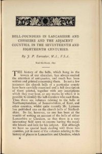 vol 42 (1890) – Bell-founders in Lancashire and Cheshire and the adjacent counties, in the seventeenth and eighteenth centuries
